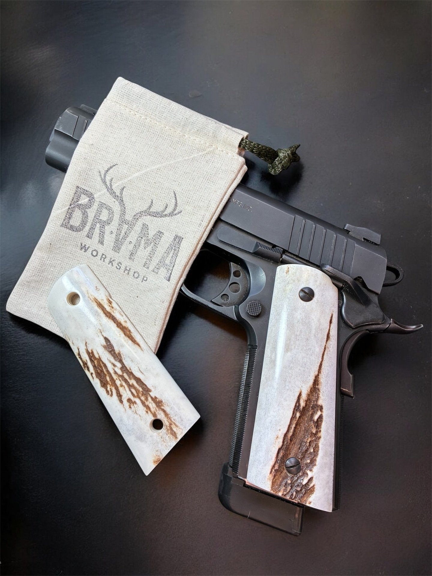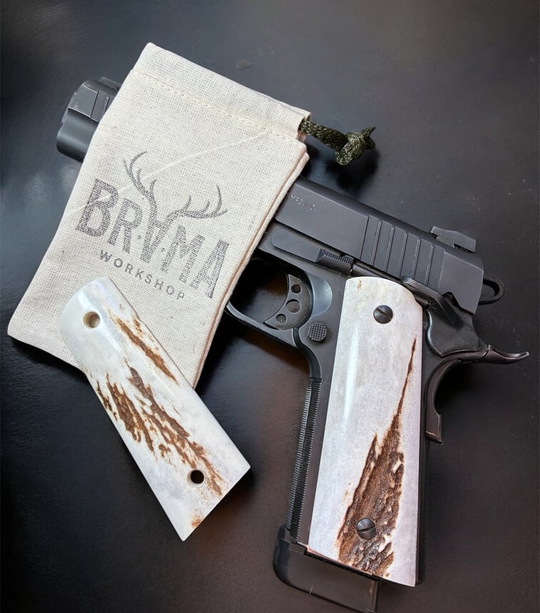 Each Brama Workshop grip is handcrafted from natural European red stag antler, selected for its density, texture, and unique character. No two pieces are the same.